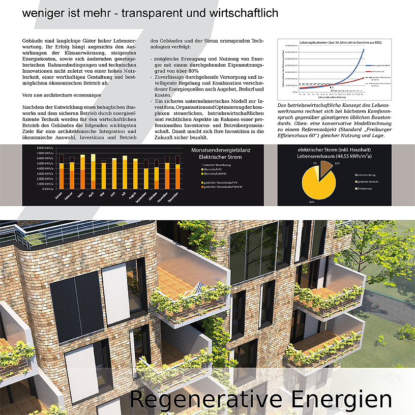 Eine gutes integrales Haustechnik- und Betreiberkonzept wird unabhängig vom Speicherkonzept immer das Ziel verfolgen, durch gute Auslegung und Abstimmung der Anlagenteile möglichst wenig 'unnötige' Energie zu erzeugen. Auch ohne elektrische Speicher sind hier bereits Eigenversorgungsgrade von über 80% zu erreichen.[spaltenwechsel][spaltenwechsel][spaltenwechsel]